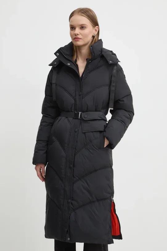 - Ο υπερυψωμένος γιακάς και η αποσπώμενη κουκούλα παρέχουν πρόσθετη προστασία από το κρύο.